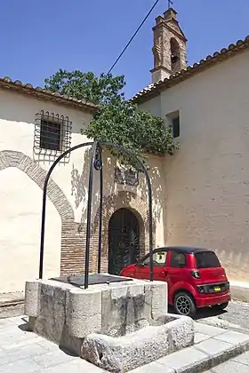 El templo presenta planta rectangular, altos muros, cubierta de tejas a dos aguas y remata su fachada con una estilizada espadaña de fábrica de ladrillos, una única campana y cruz de forja. La puerta principal, en forma de arco de medio punto, se sitúa en el lado del Evangelio, y viene el pórtico que la precede, está cubierto por una techumbre de madera a una sola vertiente.[2] Interiormente presenta nave única y sin capillas, cubierta de bóveda de arista en la que se emplean arcos perpiaños. Presenta abundante decoración y diversos elementos arquitectónicos típicos de las diferentes épocas en las que ha sufrido intervenciones.[2]