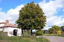 Frente a la ermita, en el ángulo que forma el «Camino de las Vueltas» y el que desciende hasta el Molino de Abajo y Puente de Guerrero hay un singular banco circular, basado en ladrillo cocido y cerámica troceada, tipo trescadís -obra neomodernista de un artista local-, en cuyo hueco interior crece un castaño de indias: merece la penas tomar asiento en dicho banco para contemplar a placer la antigua ermita.