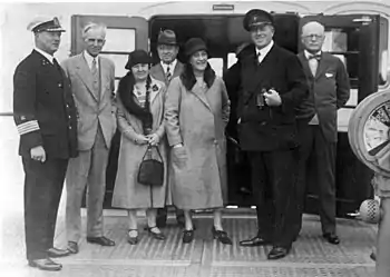![]() Ernest Liebold (cuarto desde la izquierda) en una foto grupal tomada en Alemania en septiembre de 1930 (en la leyenda original, se le conoce erróneamente como "Sr. Giehsed". | ||