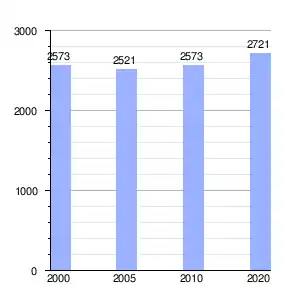 Cuenta con 2721 habitantes, lo que representa un crecimiento promedio de 0.57% anual en el período 2010-2020 sobre la base de los 2573 habitantes registrados en el censo anterior. Ocupa una superficie de 1.851 km², lo que determina al año 2020 una densidad de 1470 hab/km².[7]