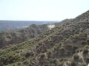 La erosión es el desgaste o denudación de suelos y rocas que producen distintos procesos en la superficie de la Tierra.[1] La erosión implica movimiento, transporte del material, en contraste con la alteración y disgregación de las rocas, fenómeno conocido como meteorización y es uno de los principales factores del ciclo geográfico. Entre los agentes erosivos están la circulación de agua o hielo, el viento, o los cambios térmicos.[2][3] La erosión produce el relieve de los valles, gargantas, cañones, cavernas y mesas, y puede ser incrementada por actividades humanas.