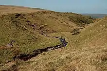 Dobbingstone Burn, Escocia: esta fotografía ilustra dos tipos diferentes de erosión que afectan al mismo lugar. La erosión del valle se produce debido al flujo de la corriente, rocas grandes y pequeñas (y gran parte del suelo) que se encuentran en los bordes son glaciales hasta que se dejó atrás a medida que los glaciares de la era glacial fluían sobre el terreno.