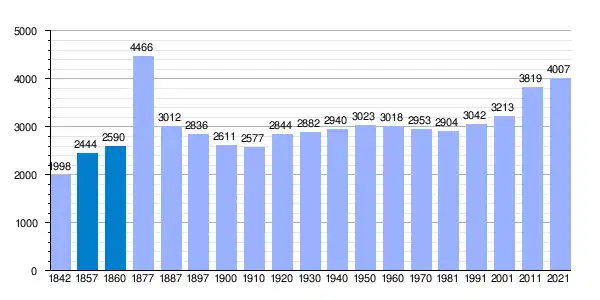 | Gráfica de evolución demográfica de Olite/Erriberri[11] entre 1842 y 2021 |