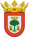 Trae de oro y un olivo de sínople arrancado y acompañado de dos castillos almenados y mazonados en su color. Coronado y circundado por una cadena de oro sobre fondo rojo.