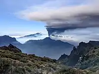 La columna de humo del volcán desde el Roque de los Muchachos el 31 de octubre.