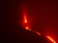 La erupción volcánica de La Palma de 2021 se inició el 19 de septiembre en la zona de Montaña Rajada,[5] cercano a la localidad de El Paraíso del municipio de El Paso, en la isla de La Palma, perteneciente al archipiélago atlántico de Canarias (España).[2] Fue la última erupción en la isla desde la del Teneguía en 1971 y la última en Canarias desde la submarina de El Hierro de 2011.[6][7][8][9] La erupción del volcán de Tajogaite se detuvo el 13 de diciembre tras 85 días de actividad,[10] siendo la erupción histórica más larga registrada en la isla y tercera en el archipiélago, tras Timanfaya en Lanzarote y Tagoro en El Hierro.[11][12] El 19 de diciembre de 2023 se anunció en el BOC las medidas cautelares por la posible existencia de valores geomorfológicos, por lo que quedarían protegido el volcán de Tajogaite y su entorno, así como las dos fajanas.[5] El 9 de febrero de 2023 el Cabildo de La Palma oficializó en sesión plenaria la denominación de Volcán de Tajogaite para esta erupción.[13]