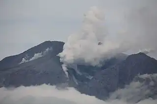 ![]() El Monte Ontake en erupción el 4 de octubre de 2014. | ||