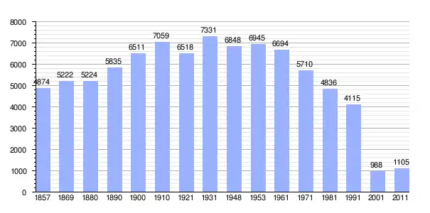 | Gráfica de población de Ervenik 1857-2011 |