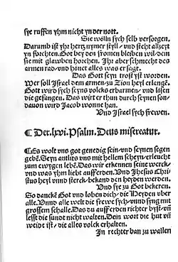 - Enchiridion Oder eyn Handbuchlein, eynem yetzlichen Christen fast nutzlich bey sich zuhaben, zur stetter ubung unnd trachtung geystlicher gesenge, und Psalmen, Rechtschaffen unnd kunstlich vertheutscht. 1524, Der .lxvi. Psalm. Deus misereatur.