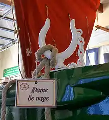 Este término, propio del vocabulario marino, se popularizó en Francia en 2007 por la publicación de la novela de Bernard Giraudeau, Les Dames de nage. En 1995 una exposición dedicada a la artista-pintora Monique Frydman en el Museo de Bellas Artes de Caen se titulaba Les dames de nage, 1992-1995.[1] Dames de nage es también el título de una recopilación de noticias de Jan Rozmuski publicada en 2004.[2]