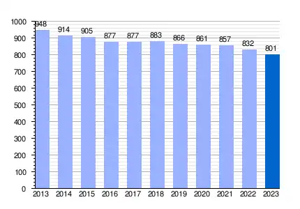 | Gráfica de evolución demográfica de Escóznar entre 2013 y 2023 |