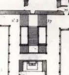 Era de caja abierta, lo que permitía una visión amplia de ambos patios desde la escalera, así como de un patio al otro.