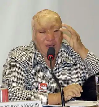 ![]() La presidenta de la Asociación de Mujeres Escalpeladas de Amapá, hablando ante una comisión de la Cámara de Diputados de Brasil. | ||