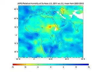 La Comisión Económica de las Naciones Unidas para África de 2006 estima que 300 millones de los 800 millones que viven en el continente africano viven en un entorno con escasez de agua.[4] Específicamente en el norte de África, así como en el sur de África, el aumento de las temperaturas globales que acompaña al cambio climático ha intensificado el ciclo hidrológico que conduce a estaciones secas más secas, lo que aumenta el riesgo de sequías más extremas y frecuentes. Esto afecta significativamente la disponibilidad, calidad y cantidad de agua debido a la reducción de los caudales de los ríos y el almacenamiento en embalses, la disminución de los niveles freáticos y el secado de los acuíferos en las regiones norte y sur de África.