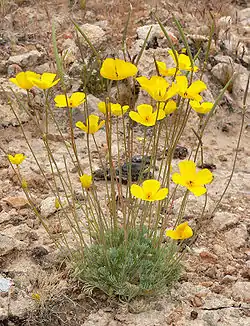 ![]() Eschscholzia glyptosperma en el desierto al este de Las Vegas. EE.UU. | ||
