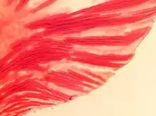 - Extraxilemáticas: corresponden al floema o liber (fibras liberianas) o formas grupos o anillos corticales.[2] En las monocotiledóneas constituye el principal tejido de sostén, y pueden formar anillos y cordones subepidérmicos y/o corticales, y también rodeando los haces vasculares (venas).