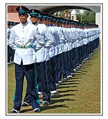 Tradición Corresponde al alumno más destacado intelectualmente la honra de conducir el Estandarte Distintivo de la Escuela en todas las solemnidades en que Guardia de la bandera se incorpora. Esta tradición se remonta a los primeros años de la creación de la Escola Preparatória de Cadetes do Exército.