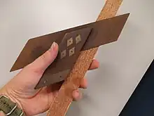 Una histórica escuadra de carpintería en forma de 'A', que también se puede combinar con una plomada para marcar ángulos.[9] |