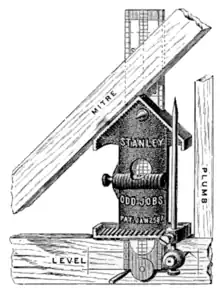 Una herramienta multifunción fabricada originalmente por Stanley, que incorpora una escuadra de prueba y una escuadra de inglete. |