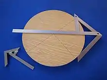Una escuadra rápida es una escuadra de carpintero triangular que combina las funciones de escuadra combinada, escuadra de comprobación y escuadra de enmarcado en una sola herramienta. Se puede utilizar para calcular y marcar ángulos, para suspender una plomada y como guía para una sierra circular.[17][18][19] |