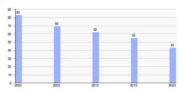 | Gráfica de evolución demográfica de Escudeiros entre 2000 y 2023 |