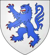 "De plata, león de azur, lampasado y armado de gules".