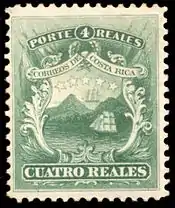 Escudo del Estado Libre de Costa Rica dentro de la República Federal de Centroamérica de nov 2, 1824 a nov 15, 1840. Y usado de nuevo por el Estado Independiente de Costa Rica de sept, 1842 a sept, 1848