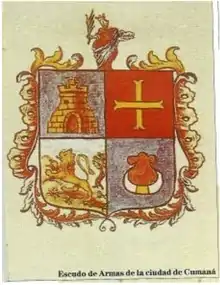 El Escudo de Armas de Cumaná, que actualmente ostenta fue el segundo concedido a la ciudad, creado por Real Cédula fechada en el palacio de San Lorenzo de El Escorial el 3 de julio de 1591, y fue otorgado por Felipe II junto al título de ciudad.