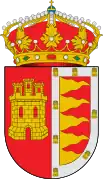 | Blasón | Blasón de la ciudad con la bordura modificada de plata sobre pergamino heráldico y rodeado por una cinta con los colores de la bandera española, cargada de ocho escudetes de oro (amarillos o dorados) | |