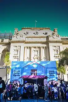 El 12 de abril de 2017 la Confederación de Trabajadores de la Educación de la República Argentina instaló, frente al Congreso de la Nación Argentina, una estructura de caños y lonas con forma, figura y sentido de escuela pública para reclamar por una nueva ley de financiamiento educativo y exigir al Gobierno la apertura urgente de la Paritaria Nacional Docente.[2] El inicio de la propuesta, estuvo marcada por la represión policial que sufrieron los docentes el 9 de abril por parte de efectivos de la Ciudad de Buenos Aires que intentaron impedir que los maestros volvieran a reclamar bajo esta metodología, como ocurrió con la Carpa Blanca en 1997.[3]