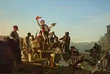 Los primeros directores de la academia Peter von Cornelius y Wilhelm von Schadow configuraron el orientación más estrecha de la institución docente inicial en el sentido del movimiento nazareno y del clasicismo. Los temas que ordenaron según la Jerarquía de los géneros clásicos incluían los de la mitología, el cristianismo, los temas históricos importantes y la pintura de paisaje. La corriente del Romanticismo se extendió cada vez más en Alemania y se abrió paso en la Academia. Sin embargo, bajo la influencia de Vormärz, el programa de la Academia y su entorno artístico pronto se ampliaron para incluir la amplitud de las corrientes románticas y otras, de modo que un realista, crítica social La crítica social y la pintura de paisaje y de género tuvieron más espacio y mayor validez. Entre los temas y estilos pictóricos de la Malerschule se encuentran la pintura de historia, el paisaje, el género y la naturaleza muerta en todas las facetas representadas, que desempeñaron un papel en el bürgerlich arte determinado del siglo XIX.[4] A través de las críticas, las publicaciones y las exposiciones, de la difusión de las obras a través del mercado internacional del arte, especialmente a Londres, Ámsterdam, Bruselas, París, Chicago y Nueva York, de los viajes, de las amplias conexiones amistosas y familiares, y de las carreras académicas y profesionales, a veces globales, de sus protagonistas, la obra de la Escuela de Pintura de Düsseldorf irradió a lo largo y ancho, especialmente en el periodo comprendido entre 1830 y 1870, pero ciertamente también en las últimas décadas del siglo XIX. Los pintores formados en Düsseldorf transmitieron sus técnicas artísticas, actitudes, métodos de enseñanza, temas, topoi y discursos por todo el mundo, en otras Kunstakademien y en las emergentes Künstlerkolonie. La pintura de paisaje y de género de Düsseldorf fue durante muchos años líder y formadora de estilo.[5] La reputación internacional de la Escuela de Pintura de Düsseldorf entre las instituciones educativas artísticas de Alemania sólo fue superada de nuevo por la Bauhaus.[6]
