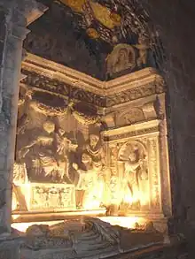 - Sepulcro de alabastro y retablo, encargo de Jaime Conchillos, obispo de Lérida, que fue uno de los grandes mecenas. Obra de Forment.