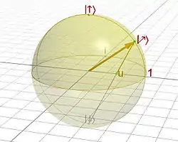 Notemos ahora que si , , y si , . Esta última expresión corresponde a los estados sobre el ecuador de nuestra esfera. Esto sugiere que en realidad basta para tener todos los estados posibles.