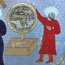La astronomía árabe medieval heredó la idea de una Tierra esférica de la tradición astronómica griega.[58] El marco de referencia teórico se basaba fundamentalmente en las contribuciones de Aristóteles (De caelo) y Ptolomeo (Almagesto), quienes trabajaron ambos bajo la premisa que la Tierra era esférica y el centro del universo (modelo geocéntrico).[58] Como Al-Juarismi dijo:
