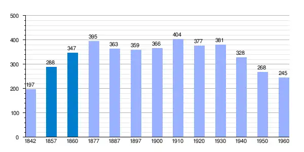 | Gráfica de evolución demográfica de Espés[3] entre 1842 y 1960 |