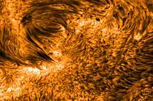 En física solar, una espícula es una concentración de flujo gaseoso de aproximadamente 500 km de diámetro que se eleva desde la fotósfera del sol hacia la cromósfera a una velocidad aproximada de 20 km/s. Las espículas fueron descubiertas en 1877 por el reverendo Angelo Secchi, del Observatorio Vaticano en Roma.