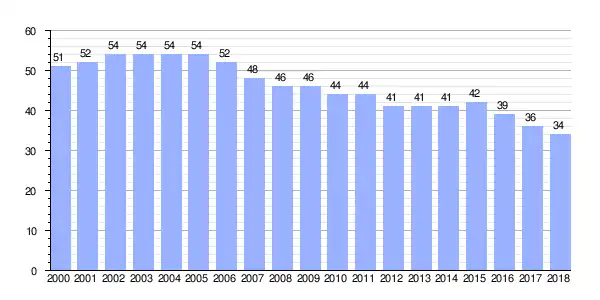 | Gráfica de evolución demográfica de Esparís entre 2000 y 2018 |