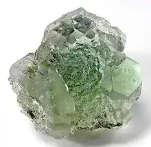 La fluorita (también denominada espato flúor o fluorina[1]) es un mineral del grupo III (halogenuros) según la clasificación de Strunz, formado por la combinación de los elementos calcio y flúor, de fórmula CaF2 (fluoruro de calcio).[2] Su estructura cristalina pertenece al sistema cúbico, grupo espacial Fm3m y se presenta con hábito cúbico, octaédrico y rombododecaédrico. Es un mineral que presenta propiedades físicas de termoluminiscencia y fluorescencia (frente a la luz ultravioleta).[3] En la industria, la fluorita se emplea principalmente como fundente en la metalurgia del hierro y del acero. Se utiliza igualmente como fuente de flúor y ácido fluorhídrico, en el esmaltado de la cerámica y en la fabricación de algunos tipos de vidrios ópticos. La belleza de los ejemplares que pueden encontrarse en muchos yacimientos hace que sea un mineral muy apreciado por los museos y coleccionistas particulares.[4]