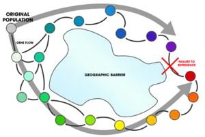 Una especie de anillo es un modelo alternativo a la especiación alopátrica, en el que una nueva especie puede surgir sin que se interrumpa el flujo genético entre poblaciones. Aun así, Jerry Coyne y H. Allen Orr indican que este modelo está más estrechamente relacionado con la especiación parapátrica.[10][8]