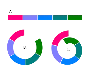 La especie en anillo clásica es la gaviota Larus. En 1925 Jonathan Dwight describió el género formando una cadena de variedades alrededor del círculo Ártico.[4] En 1938, Claud Buchanan Ticehurst argumentó que el mosquitero verdoso se había extendido desde Nepal hacia ambos lados del Himalaya, adaptándose a cada nuevo entorno y coincidiendo de nuevo en Siberia donde ya no son capaces de hibridar.[5] Estos y otros descubrimientos ayudaron a Ernst Mayr a formular una teoría sobre las especies en anillo en 1942 con su estudio Systematics and the Origin of Species. También en los años 1940, Robert C. Stebbins describió las salamandras Ensatina alrededor del Valle Central de California como una especie en anillo.[6][7][8] En 2012 se describió el primer ejemplo de una especie en anillo en plantas con euforbias formando un anillo alrededor del Mar Caribe.[9]