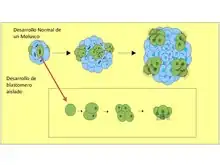 Se han descrito tres modos básicos de compromiso celular. El primero se llama especificación autónoma. En este caso, si se remueve un blastómero particular de un embrión en su desarrollo temprano, ese blastómero producirá el mismo tipo de células que hubiera producido si aún formara parte del embrión. Además, el embrión de donde se tomó el blastómero no tendrá esas células que hubiera producido ese blastómero. La especificación autónoma da origen a un patrón de embriogénesis conocido como desarrollo en mosaico,[3] puesto que parece que el embrión es construido como un mosaico de partes independientes, auto diferenciables. Embriones de invertebrados, especialmente los de moluscos, anélidos, y tunicados, tienen especificación autónoma para determinar el destino de sus células. En estos embriones, los determinantes morfogenéticos (proteínas o RNAmensajeros) son puestos en diferentes regiones del citoplasma del óvulo y son porcionados en las diferentes células mientras el embrión se divide.[2]