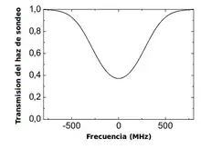 Si tan solo se utilizara el haz de sondeo y se analizara la señal obtenida con un fotodiodo, el resultado sería una curva de intensidad de perfil gaussiano (con efecto Doppler). (Figura 2)