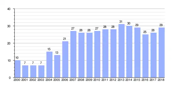 | Gráfica de evolución demográfica de Espiñeira entre 2000 y 2018 |