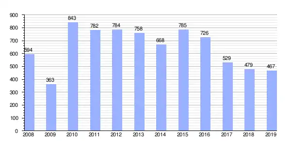 Deuda viva del Ayuntamiento de Espiel en miles de Euros según datos del Ministerio de Hacienda y Ad. Públicas.[4] |