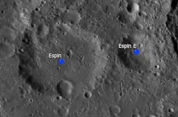 Por convención estos elementos son identificados en los mapas lunares poniendo la letra en el lado del punto medio del cráter que está más cerca de Espin.