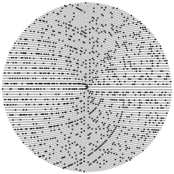 - Una espiral que, en la ilustración, termina cerca de la parte inferior del disco: números de la forma n2 + n + 41, el polinomio descubierto por Euler.