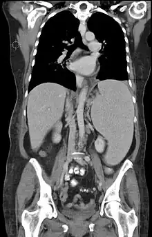 La esplenomegalia es un agrandamiento patológico del bazo o estructura esplénica más allá de sus dimensiones normales (11 cm). También podría considerarse en función del peso (peso normal en un adulto, en los hombres: 80-200 gramos, en las mujeres: 70-180 gramos, con un promedio de 150 gramos).