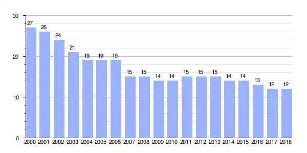 | Gráfica de evolución demográfica de Esquipa entre 2000 y 2018 |