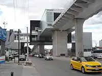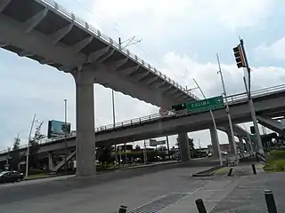 En este tramo el tren se eleva 14 metros para sobrepasar el puente vehicular, lo cual da una maravillosa vista de la ciudad a los pasajeros.
