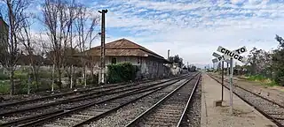 ![]() Anden y edificio de bodega de la estación Talagante (septiembre, 2023). | |||||||||||||||||||||||